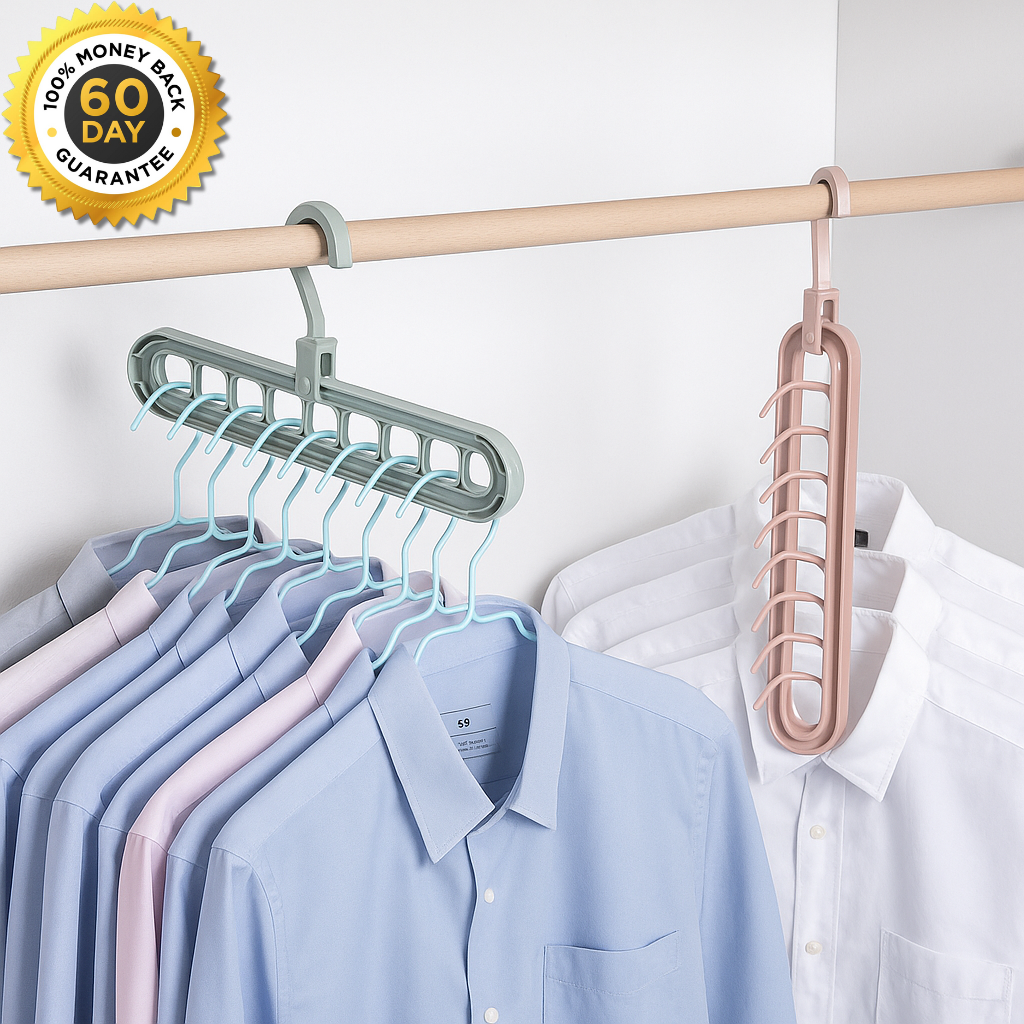 📌 9-in-1 Smart Design – One hanger, nine garments, zero stress